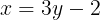 (上:式①,下:式②)が成り立つ。前で求めたxで表したuとvを式①に代入して