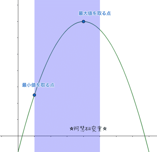 のグラフは,上に凸,対称な軸はx=4である。よって,定義域