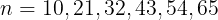 以上をまとめ,求めるnの個数は5+5+6=16個であり,このうち,素数であるnは小さい順に,