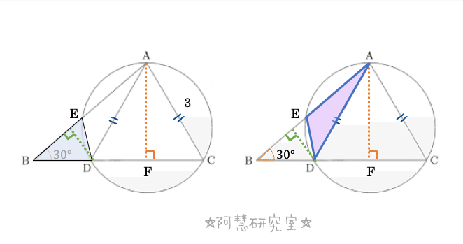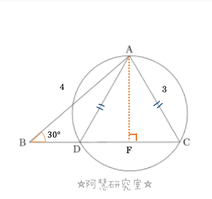 (1)線分DCの中点を点Fとし,線分AEを引く(下の図になる)。AD=ACであるから,AF⊥DCとなる。