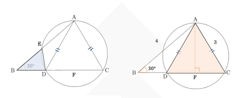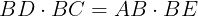が得られる。方べき定理により,BD・BC=AB・BEが成り立つ。