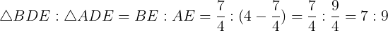 さらに,△BDEと△ADEは同じ高さをもつ三角形であるから,面積比の比はそれらの底辺の比となる。よって,